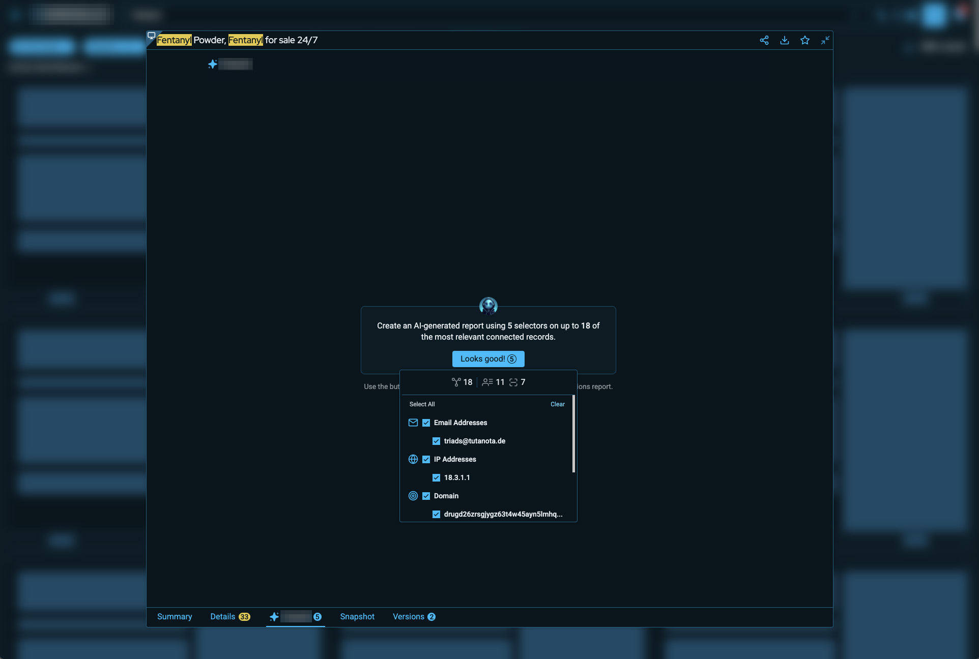 Our team was excited about using AI to assist with intelligence building and finding useful clues within our ever-growing collection of dark web records. But we knew we didn’t just want to build another chat bot. So we took some time to come up with ideas and get feedback from the team and customers.