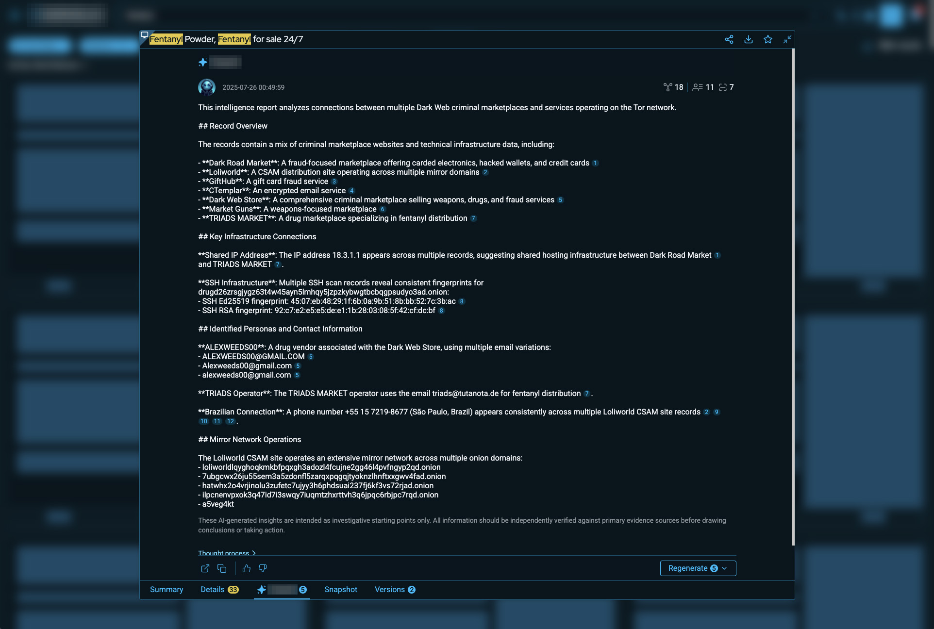 Be aware that a few visual examples contain language and topics that some may find disturbing and offensive. The dark web provides an anonymous environment that some people choose to use for nefarious purposes. These tools help build cases to deter, catch, and convict those engaged in illegal activity.